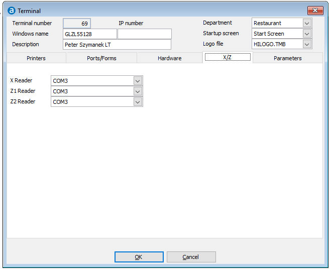 Select the start up screen for this terminal. Bar and Room Service may have different start up screens due to different requirements.